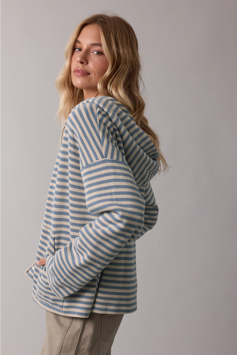 STRIPED DRAWSTRING BARREL PANTS: CARAMEL