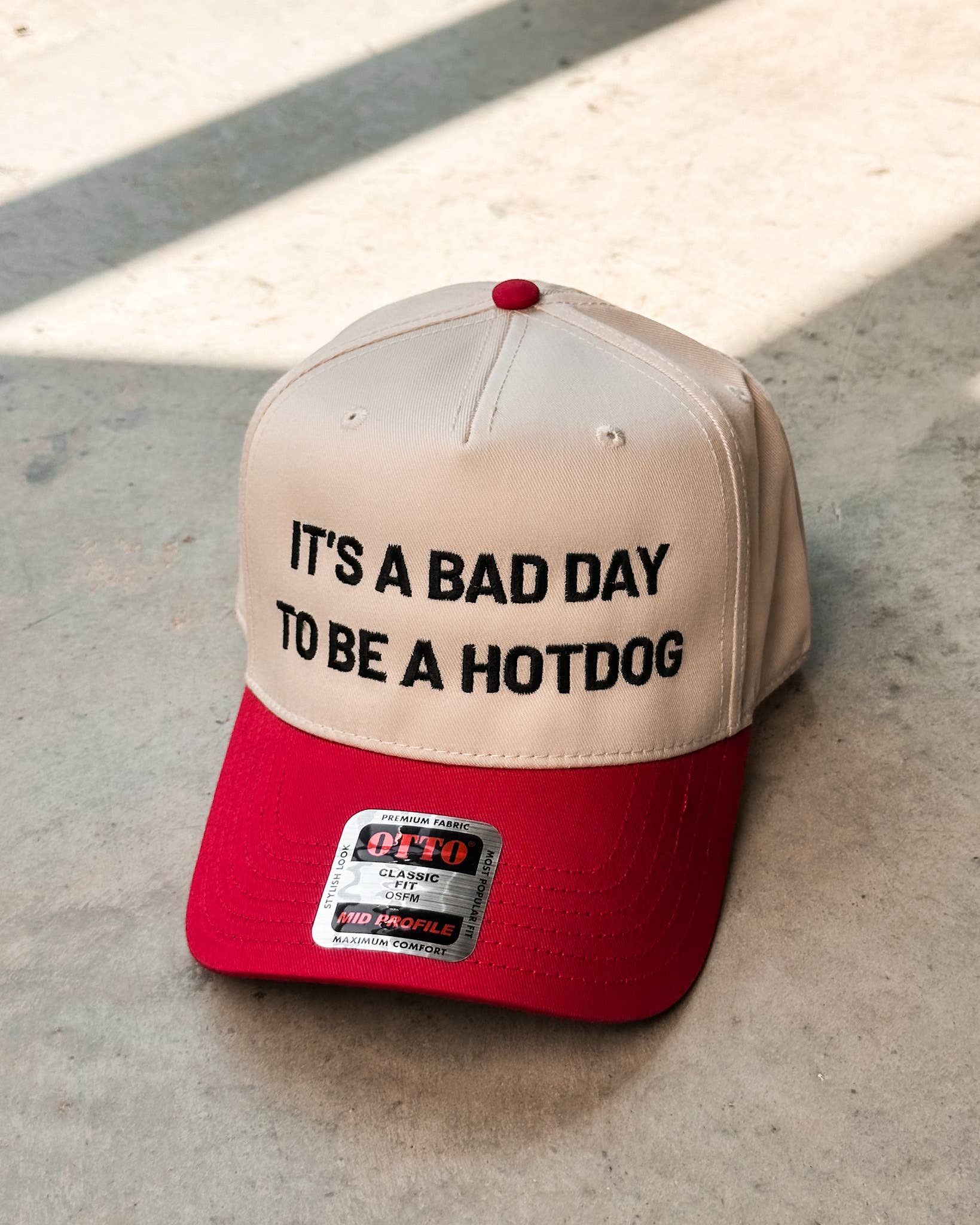 Embroidery Otto brand cap. Red bill cap with natural body.
